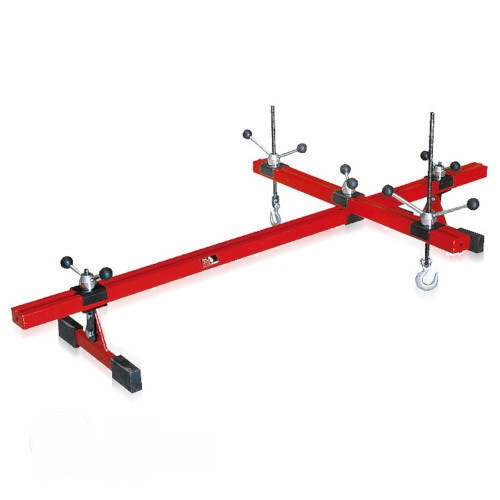 Траверса для вывешивания двигателя – приспособление, часто используемое в мастерских и станциях тех. обслуживания авто для работы при вывешивании двигателя и дальнейшей замены его составных частей, без извлечения его целиком из моторного отсека автомобиля. Это механизм применяется в различных видах работ: при кузовном и при слесарном. Траверсы для вывешивания двигателя хороши тем, что не нуждаются в источнике питания, поэтому оказываются экономными при выполнении работ. Благодаря траверсе рабочий процесс моториста становится легче и значительно проще, ведь с помощью этого простого оборудования один человек без труда может выполнить всю силовую работу. | Конструкция траверсы проста и состоит из двух опор, они устанавливаются на внутренние поверхности самого моторного отсека, и двух цепей с фиксаторами, за которые и крепится двигатель. За счёт большого диапазона регулировки, траверсы можно применять для узлов на любых видах автомобилей: легковых, грузовых и микроавтобусах. Крепление двигателя происходит в двух главных точках благодаря наличию в своём устройстве специальных особо мощных захватов, которые на нём фиксируются с противоположной стороны на креплениях. Траверсу мастера ещё называют трапецией с одним винтом, универсальной опорой для вывешивания двигателя и КПП «на крыльях». С помощью траверсы можно с лёгкостью выгрузить и сбалансировать различные тяжелые грузы автомобильные и неавтомобильные со смещенным центром нагрузки. Этот не сложный механизм имеет особо компактные размеры, высокую манёвренность во время работы и при этом обладает мощной грузоподъёмностью. Такие характеристики установки в сочетании с невысокой ценой делают траверсы для вывешивания двигателя незаменимым другом и помощником для специалистов автосервиса.