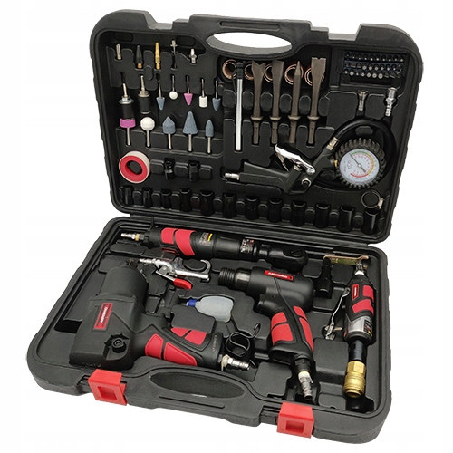 это универсальное решение для различных работ с использованием воздушных компрессоров. Практически все необходимые инструменты находятся в одном кейсе, что очень удобно, особенно для домашнего гаража.