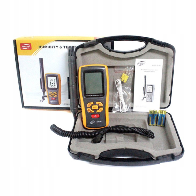 Гигрометр и термометр GM1361 — это универсальное и точное устройство для измерения влажности и температуры, оснащённое расширенными функциями, что позволяет широко применять его в различных сферах, таких как лаборатории, склады, системы кондиционирования, логистика, пищевая промышленность и охрана окружающей среды.