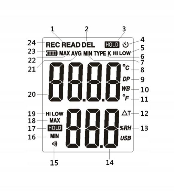 Разрешение: 0,1°C / 0,1% RH