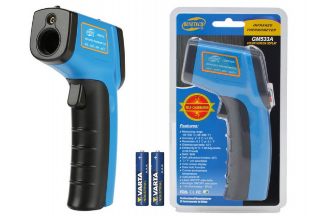 Пирометр Benetech GM533A имеет следующие особенности:широкая шкала измерения температуры