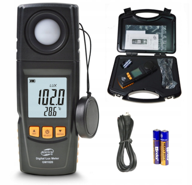 Люксметр GM1020 марки Benetech — это точный цифровой прибор, предназначенный для измерения уровня освещённости и температуры окружающей среды. Диапазон измерения освещённости до 200 000 люкс, а быстрый отклик позволяет использовать прибор как в профессиональной деятельности, так и в повседневной эксплуатации. Устройство отлично подходит для контроля освещения рабочих мест, общественных зданий, промышленности, лабораторий, фотографии, а также при выращивании растений.