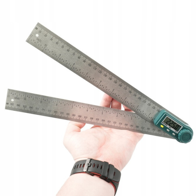 Электронный угломер универсального назначения обеспечивает полный диапазон измерения 360°. Устройство оснащено функцией автоматического отключения, что позволяет экономить энергию.