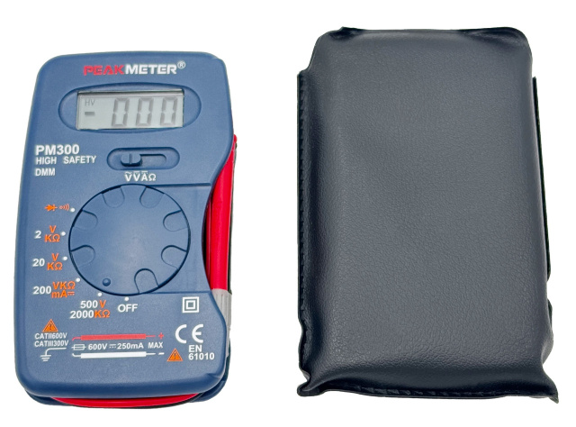 В комплект входят прочный защитный чехол, который защищает прибор в поездках или в ящике с инструментами. Небольшой вес — 110 г — делает PM300 идеальным запасным мультиметром для электриков, монтажников и мобильных сервисных специалистов.