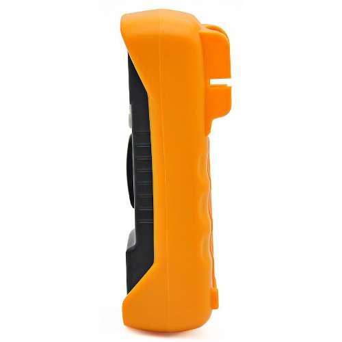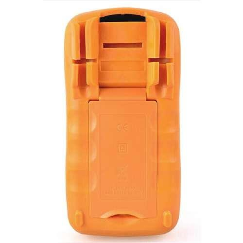 Ергономічний корпус із гумовим захисним чохлом захищає прилад від ударів, а відкидна підставка дозволяє зручно встановити його на робочому столі. Чіткий дисплей на 2000 відліків забезпечує добру читабельність під будь-яким кутом, а функція HOLD фіксує результат, полегшуючи запис вимірювань.