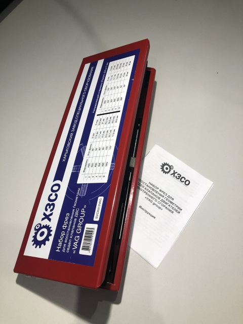 Набор состоит из режущего инструмента – фрез (шарошек), с различными диаметрами и углами, а также направляющего стержня (пилота). Набор фрез позволяет обрабатывать фаски седел клапанов, автомобилей семейства VAG group обеспечивая следующие углы, рекомендованные заводом изготовителем: