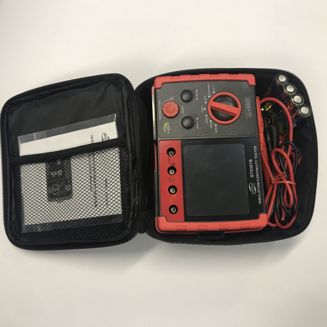GT3507B мегаомметр также реализует функции измерения переменного напряжения, а также проверки целостности линии. В процессе тестирования мегаомметр GT3507B контролирует заряд батарей и в случае необходимости информирует о недостаточном заряде, для экономии заряда реализована функция автовыключения.
