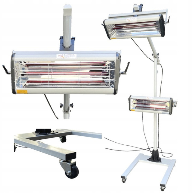 Мобильная коротковолновая инфракрасная лампа с двумя нагревательными кассетами. Предназначена для быстрого и равномерного отверждения лакокрасочных покрытий и подготовительных материалов (грунтов) в автомобильной отрасли. ИК-излучение прогревает слои изнутри до основания, сокращая время высыхания и снижая риск появления «апельсиновой корки».
