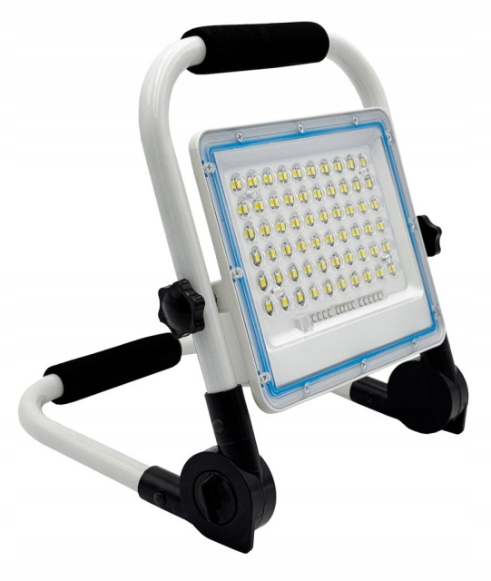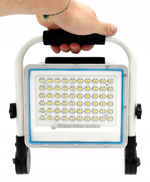 Высокоэффективный светодиодный прожектор мощностью 100 Вт с современными диодами типа SMD, питающийся от встроенного аккумулятора. Идеально подходит для освещения рабочих зон на открытом воздухе, в мастерских, на стройке, в гараже или при аварийных ситуациях. Благодаря компактной конструкции и отсутствию необходимости подключения к сети обеспечивает полную мобильность и удобство использования.