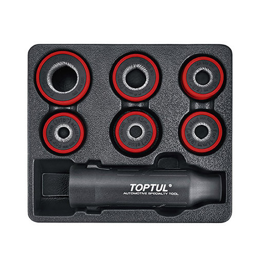 Набор инструментов для шлифования колесных втулок изготовлен компанией TOPTUL из высококачественной стали и специальных материалов для шлифования и обработки втулок колес автомобилей. Набор инструментов содержит различные насадки для шлифования и полировки втулок колес, что позволяет легко и быстро выполнять работу без необходимости использования дополнительных инструментов.