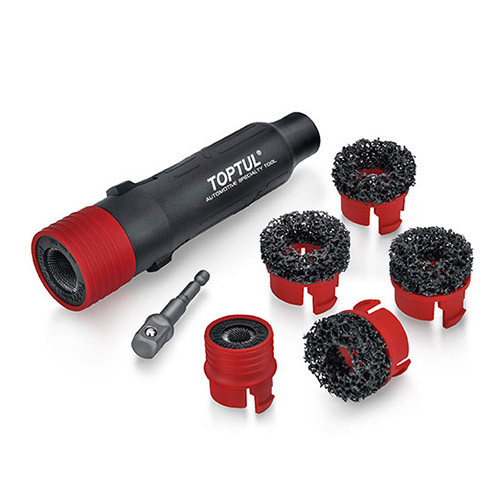 Набор инструментов для шлифования колесных шпилек и ступиц изготовлен компанией TOPTUL из высококачественной стали и специальных материалов для шлифования и обработки втулок колес автомобилей. Набор инструментов содержит различные насадки для шлифования и полировки втулок колес, что позволяет легко и быстро выполнять работу без необходимости использования дополнительных инструментов.