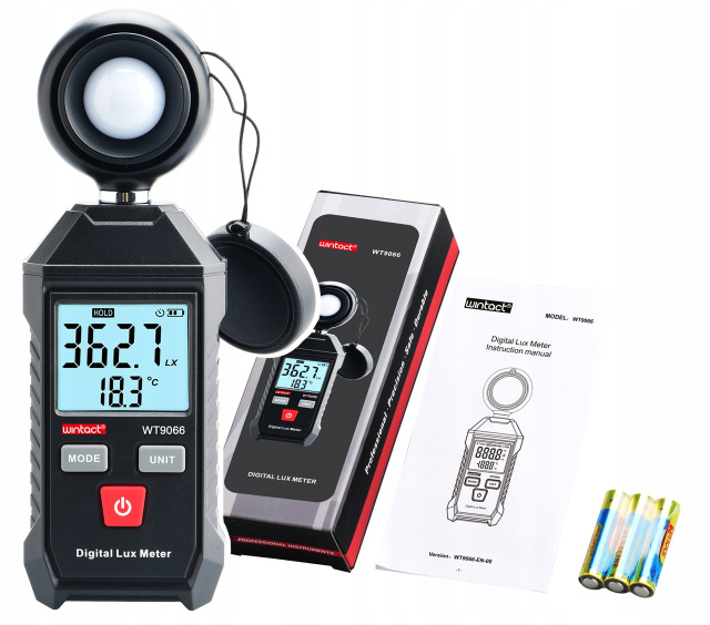 Люксметр Wintact WT9066 — это современное устройство для точного измерения освещённости в диапазоне 1–200 000 люкс. Применяется во многих областях, включая электротехническую промышленность, контроль условий труда, выращивание растений и животных — везде, где важна точная оценка освещения.