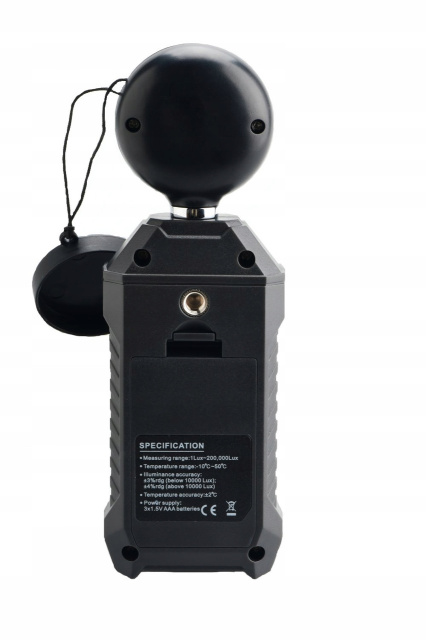 Диапазон измерения освещённости: 1–200 000 Lux / 1–18 500 Fc