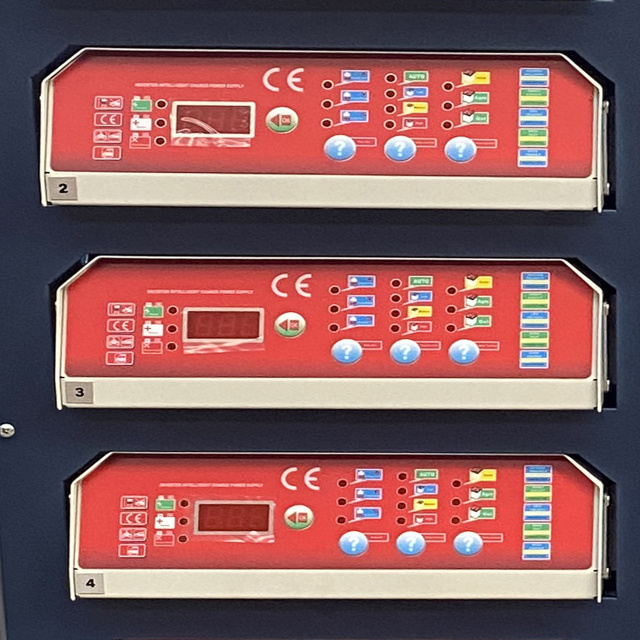 Шкаф для зарядки аккумуляторных батарей оснащен шестью мощными инверторными зарядными станциями, обеспечивающими надежную и эффективную зарядку аккумуляторов напряжением 12 и 24 В и емкостью до 400 А/ч. Каждая станция работает с максимальным зарядным током до 30 А, имеет цифровой дисплей для отображения параметров зарядки и оснащена системами защиты от перезарядки, короткого замыкания, перегрузки и перегрева. Это решение идеально подходит для СТО и предприятий, где нужно одновременно заряжать несколько аккумуляторов.