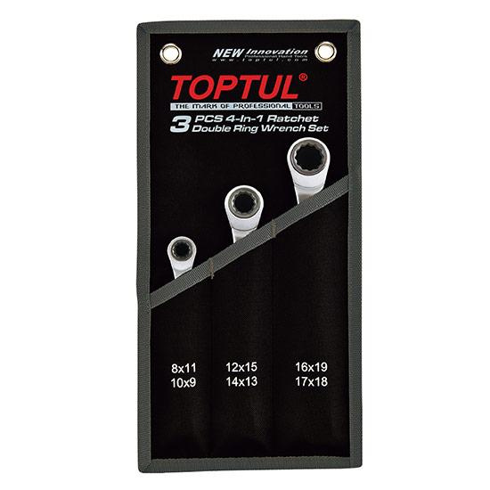Набор TOPTUL GPAQ0301 серии Pro-Series включает 3 высококачественных двусторонних накидных ключа с трещоткой. Это практичное и универсальное решение для повседневной работы в мастерской.