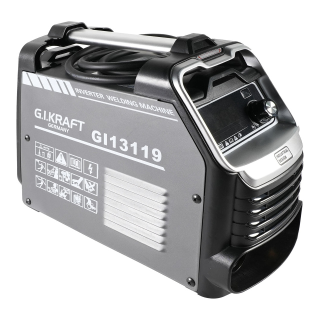 G.I.KRAFT GI13119 — надійний і компактний інверторний зварювальний апарат для ручного дугового зварювання (MMA). Пристрій працює від стандартної однофазної мережі 220 В і підходить для зварювання різноманітних металів штучними електродами.