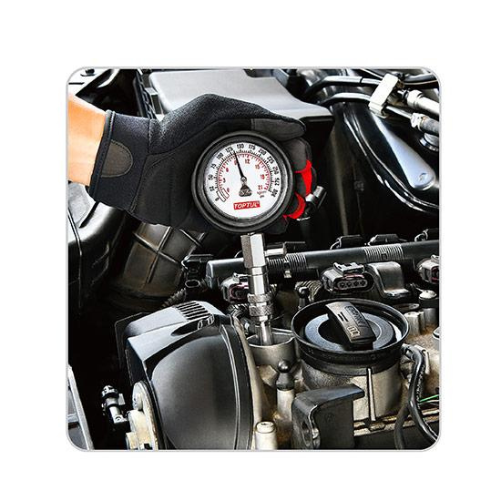 Профессиональный компрессометр, предназначенный для быстрой и точной проверки давления компрессии в цилиндрах бензиновых двигателей. Позволяет диагностировать типичные неисправности: изношенные поршневые кольца, негерметичные или подгоревшие клапаны, трещины головки, повреждения прокладки головки блока и т. п.