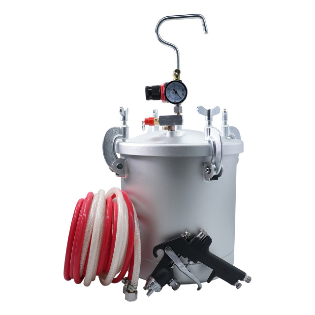 Металлический напорный бак с зажимами и уплотнением — герметичная подача краски.