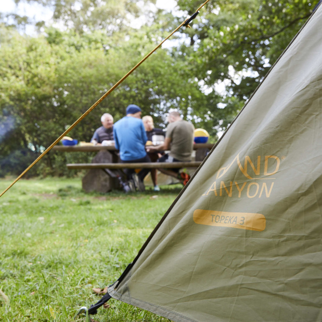 Двухслойная конструкция, полиуретановая пропитка наружного слоя и проклеенные швы обеспечивают водостойкость 4000 мм водяного столба, что позволяет не бояться проникновения влаги даже во время затяжных осадков. Вместе с тем внутренняя палатка может быть установлена отдельно от тента, что достаточно практически в летние жаркие ночи. Оливковый цвет обеспечивает отличные маскировочные свойства. Grand Canyon Topeka 3 является одной из самых высоких и широких среди трехместных палаток, при этом весит менее 4 кг, что делает её идеальной для и кемпинга и для пешего туризма.