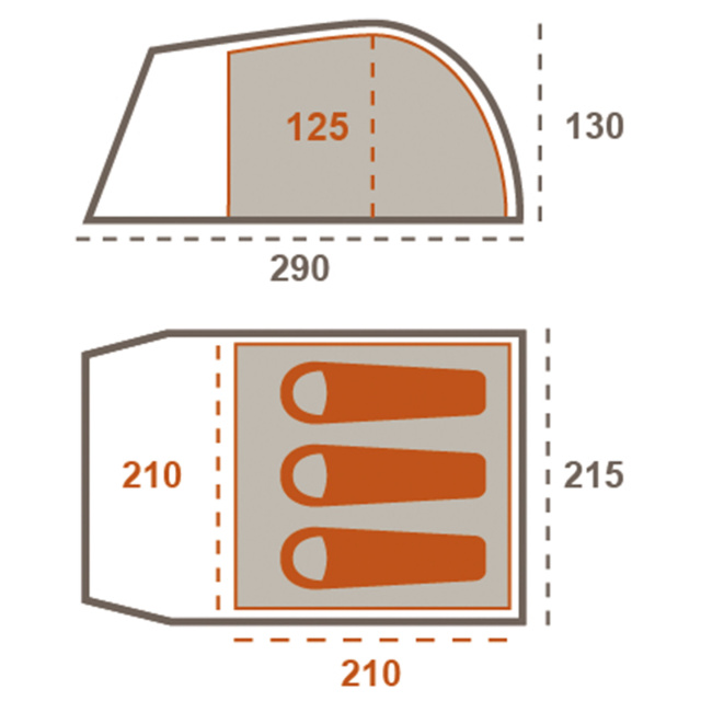 - Внешняя палатка (Д х Ш х В): 290 х 215 х 130 см