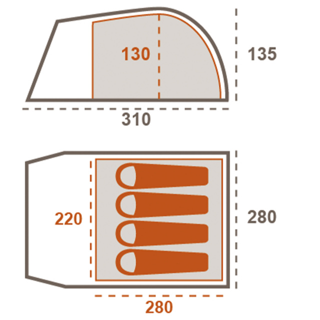 - Внешняя палатка (Д х Ш х В): 310 х 285 х 140 см