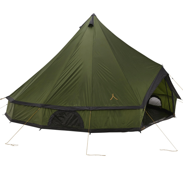 Пол палатки соединен с внешним тентом, что ислючает попадание влаги и насекомых внутрь палатки. С трех сторон палатка имеет большие вентиляционные клапаны с москитными сетками, а также три вентиляционных клапана вверху, благодаря чему в палатке отличная вентиляция воздуха и отсутствие конденсата. Широкая входная дверь сформирована металлическим каркасом и оснащена москитной сеткой. Полиуретановая пропитка наружного слоя и проклеенные швы обеспечивают водостойкость 4000 мм водяного столба, что позволяет не бояться проникновения влаги даже во время затяжных осадков. Оливковый цвет обеспечивает отличные маскировочные свойства. Grand Canyon Indiana 10 является самой большой среди десятиместных палаток шатровой конструкции, при этом имеет достаточно небольшой вес 11 кг, что делает ее очень удобной для кемпинга.