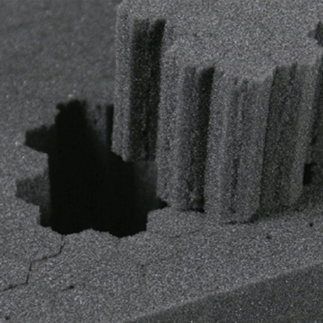 Четырехслойный вкладыш кейса состоит из пенополиуретановой пластины толщиной 19 мм, двух слоев сотового пенополиуретанового наполнителя, который можно моделировать под размеры транспортируемых приборов, толщиной 55 мм каждый, и профилированного пенополиуретанового защитного слоя верхней крышки толщиной 30 мм. Компания Vanguard традиционно внимательно относится к деталям, среди которых особенно хотелось бы выделит армированные сталью проушины для навесных замков, мягкие резиновые ручки, прорезиненные нескользящие ножки и широкие удобные защелки с надежной фиксацией.