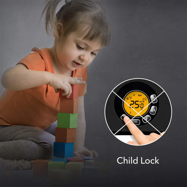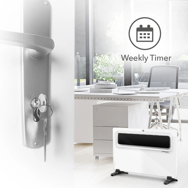 Trotec TCH 1510 E оборудован системами защиты, которые выключат прибор в случае перегрева или опрокидывания. Электронное управление позволяет настроить время и режим работы каждый день недели, а счетчик рабочих часов позволит контролировать затраты на отопление. Все настройки и температура в помещении отображаются на встроенном ЖК-дисплее. Детский замок обеспечит блокировку управления прибором, чтобы обезопасить детей.