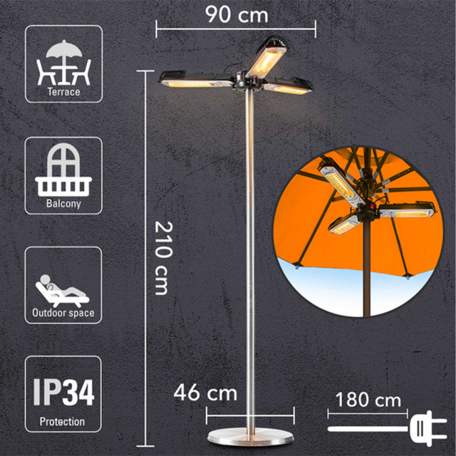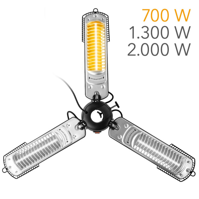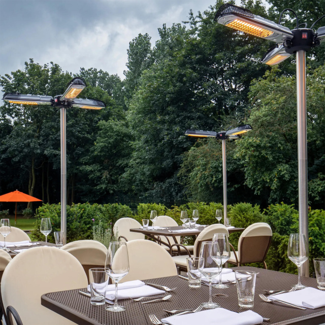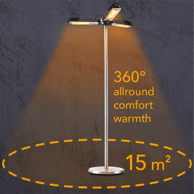 Наслаждайтесь теплыми летними температурами в любое время года на балконе, террасе или возле бассейна с помощью инфракрасного обогревателя Trotec IRS 2005. Он подойдет для частного пользования, для заведений общественного питания, как временное решение для обогрева в зоне проведения мероприятий. Специально сконструированный, с 3-мя независимыми излучателями, этот обогреватель может монтироваться на ветроустойчивую стойку из нержавеющей стали, идущую в комплекте, или под террасным зонтом с диаметром стойки от 2,5 см до 6 см, и распространяет приятное тепло и свет вокруг себя на 360º. Инфракрасный нагреватель не требует предварительного нагрева и греет не воздух, а объекты вокруг себя. Наслаждайтесь максимальным тепловым комфортом с минимальной площадью для размещения обогревателя.