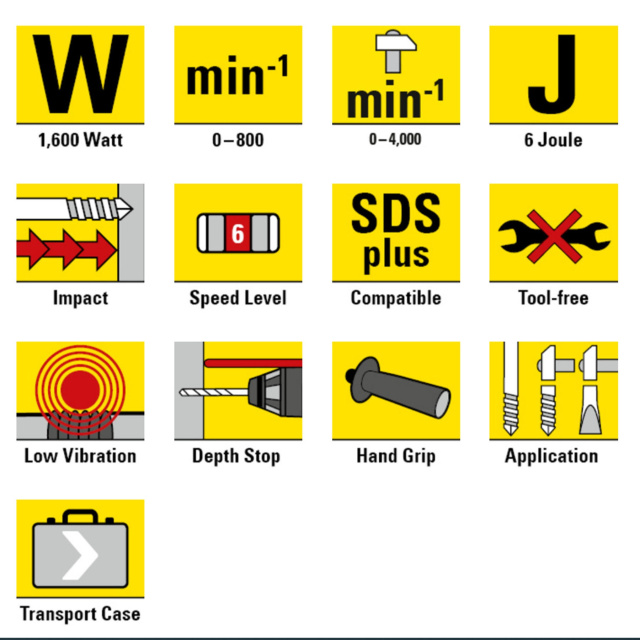 Дополнительный сверлильный патрон, поставляемый в комплекте, позволяет использовать сверла с гладким цилиндрическим конечником. Также практическим аксессуаром для всех операций сверления и бурения является встроенный ограничитель глубины, который не только позволяет соблюдать заданную глубину сверления и делать несколько отверстий одинаковой глубины, но также помогает профессионалам сэкономить деньги: если бы, например, было просверлено 500 отверстий под дюбеля всего на 6 мм больше, чем необходимо, это привело бы к ненужному износу и ранней замене сверла так же, как будто вы сверлили лишних 3 метра материала.