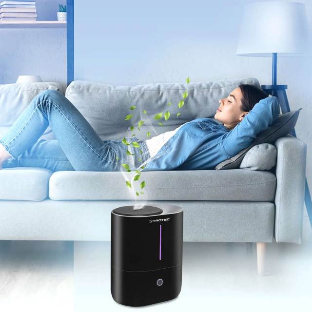 Trotec B 2 E Black имеет встроенный угольный воздушный фильтр, который заметно уменьшает содержание загрязнителей воздуха (пыльца, пыль, аллергены) и неприятных запахов. Он не только приятно увлажняет и по желанию ароматизирует воздух в помещении, но и постоянно очищает его.