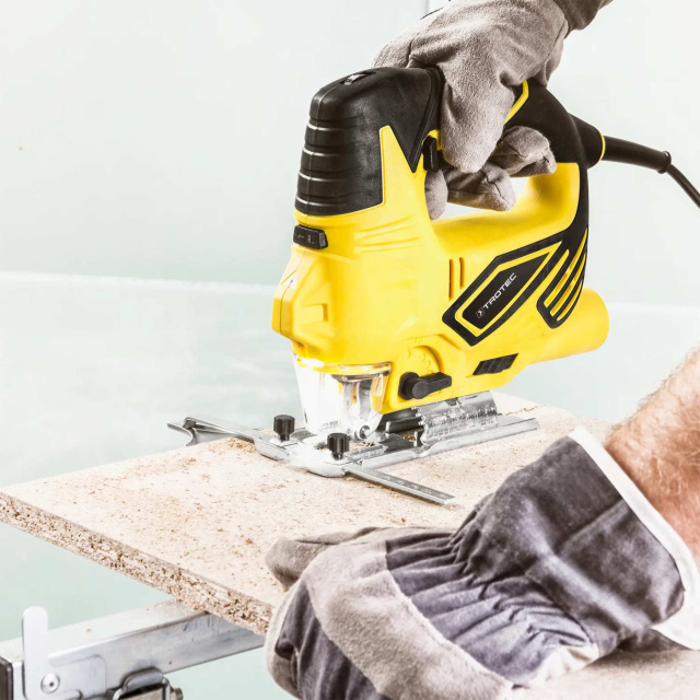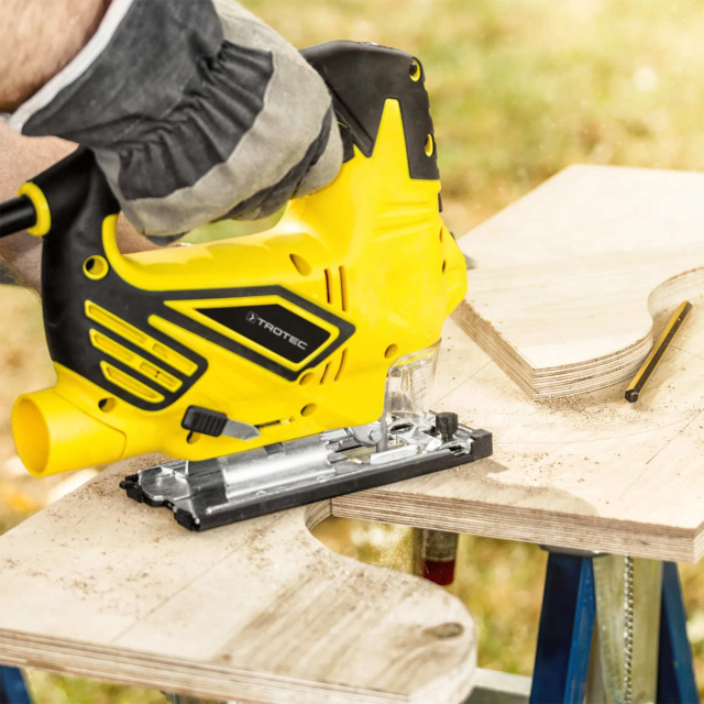 Trotec PJSS 12-230V приятно удивляет диапазоном скорости от 0 до 3000 об/мин, что позволяет точно подобрать скорость и даже количество резов для каждого материала. Блокировка включателя также позволяет фиксировать выключатель для длительной непрерывной работы с постоянной скоростью.