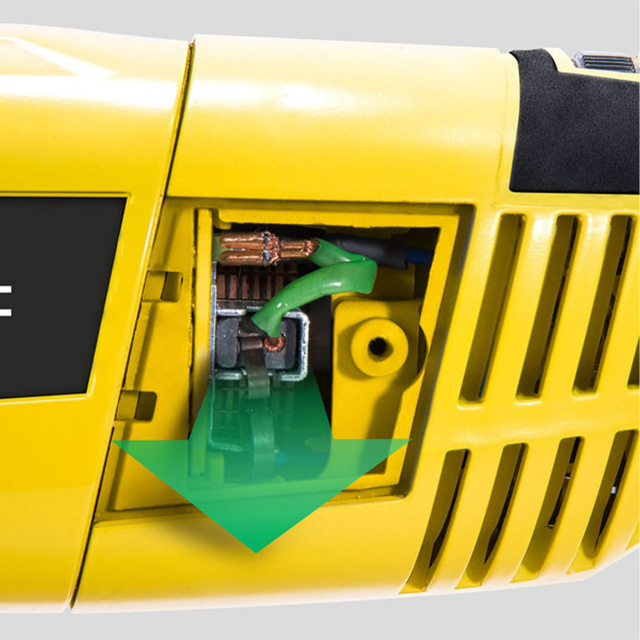 Бесступенчатый выбор скорости с помощью регулировочного колеса позволяет пользователю оптимально настроить производительность устройства для соответствующего материала в диапазоне от 3000 до 12000 об/мин., а главное, что продуманная эргономика инструмента позволяет изменять скорость вращения пальцем одной руки, не отрываясь от работы. Так же удобно над кнопкой пуска расположена кнопка, предотвращающая случайное включение устройства, так что включить устройство можно одним пальцем одной рабочей руки.