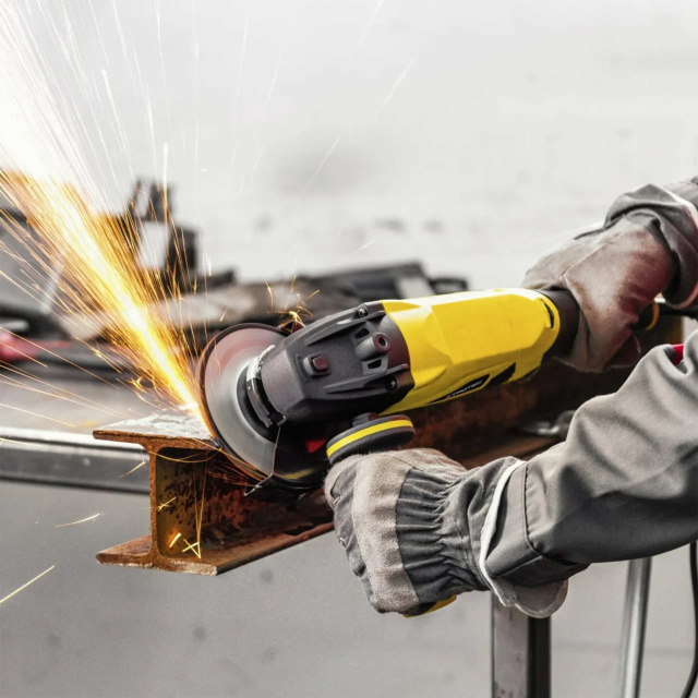 Положение защитного кожуха шлифмашины можно быстро изменять с помощью эксцентрикового рычага без дополнительных инструментов. Кроме того, угловая шлифмашина оснащена фиксатором шпинделя, что делает возможным простой и быстрой смену диска.