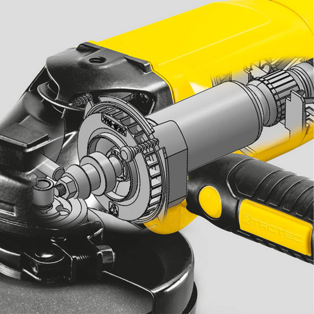 Угловая шлифмашина Trotec PAGS 10-230 обладает высокой стабильностью и выносливостью благодаря долговечной литой алюминиевой зубчатой головке редуктора, имеет электронную регулировку и поддержку максимальных оборотов независимо от нагрузки при работе, что делает инструмент более эффективным для точной резки и обработки различных типов материалов.