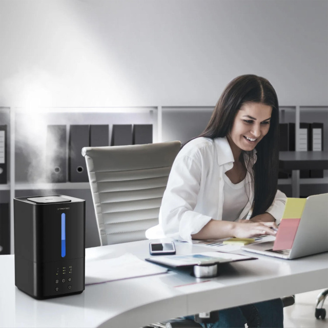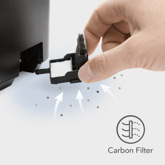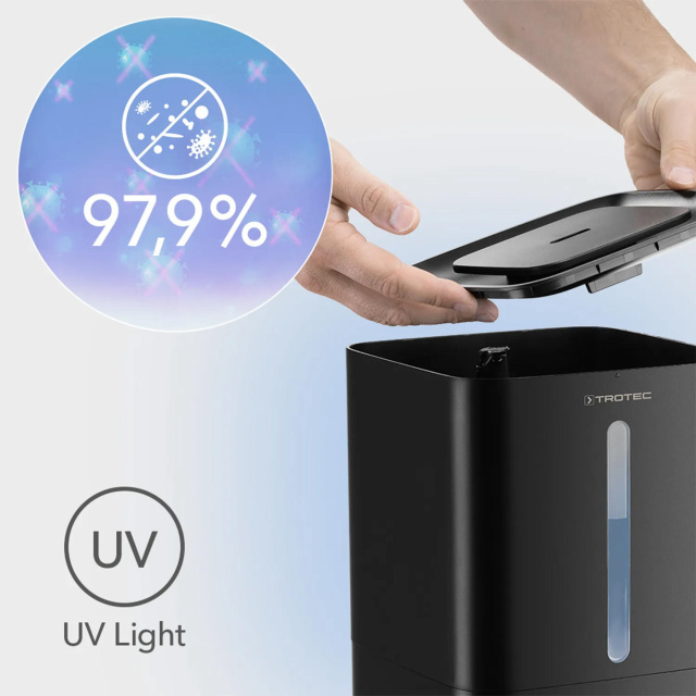 Trotec B 4 E Black имеет встроенный угольный воздушный фильтр, который заметно уменьшает содержание загрязнителей воздуха (пыльца, пыль, аллергены) и неприятных запахов. Он не только приятно увлажняет и по желанию ароматизирует воздух в помещении, но и постоянно очищает его.