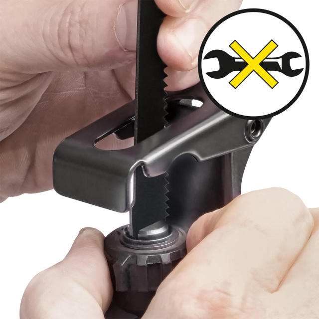 Быстрозажимное крепление пильного полотна без применения инструмента;