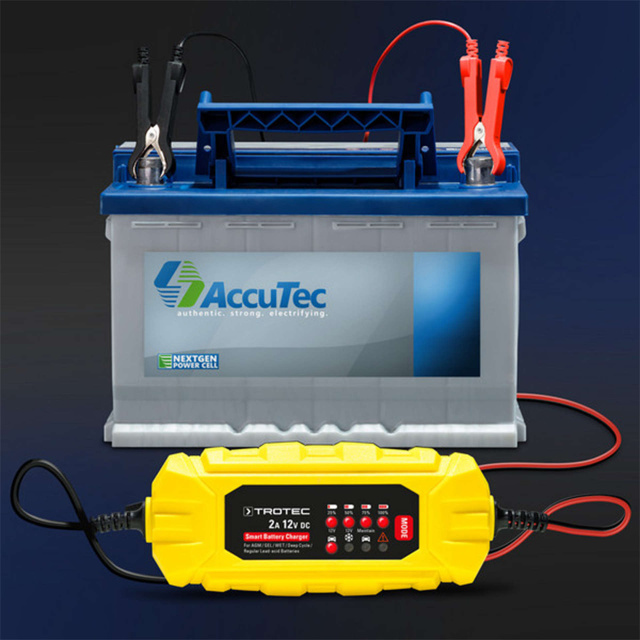 Следует внимательно отнестись к выбору правильного зарядного устройства в зависимости от того, сколько энергии для зарядки требуется для вашего автомобиля. Trotec предлагает вам в общей сложности 4 зарядные устройства для аккумуляторов, PBCS 2A , PBCS 4A , PBCS 6A и PBCS 10A, с зарядным током до 10 A и емкостью заряжаемых аккумуляторов до 200 Ah.