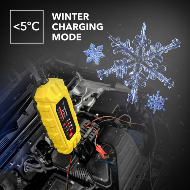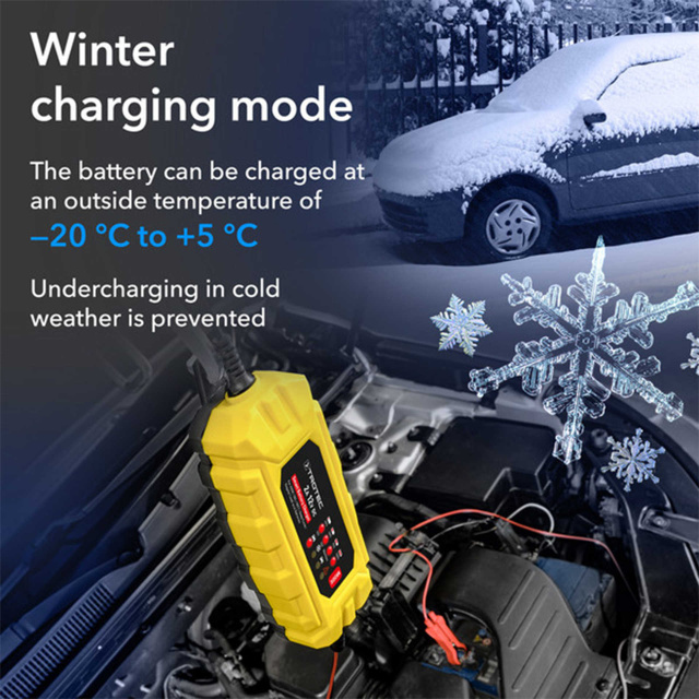 Режим зимней зарядки. Современные аккумуляторы (свинцово-кислотные, AGM и гелевые) чрезвычайно чувствительны к температуре. Если температура окружающей среды опускается ниже 5 °C, химические процессы в свинцово-кислотном аккумуляторе замедляются. Зимний режим зарядки рекомендуется для быстрой зарядки аккумуляторов 12 В в холодных условиях (от -20 °C до +5 °C) с повышенным напряжением конечного заряда.