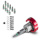 Насадки крепятся к отвертке с храповиком с помощью адаптера, входящего в комплект. Торцевые головки можно присоединить непосредственно к отвертке или, для удлинения, к 5-сантиметровому адаптеру. В зависимости от типа крепления, отдельные элементы легко комбинируются благодаря быстрому соединению. Оба переходника и квадратная головка отвертки с храповиком оснащены подпружиненным шарикоподшипником, что обеспечивает надежную фиксацию насадок и торцевых головок.