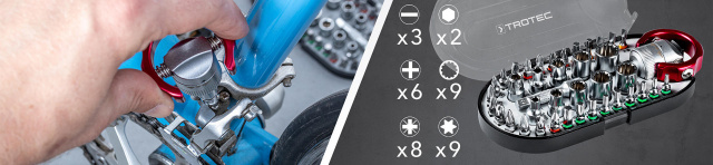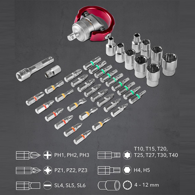 На работе, дома, в хобби или в путешествиях - с Trotec 40 pieces Bit and Socket Wrench Set вы всегда будете иметь под рукой необходимый набор насадок. Вместе с продуманной компактной ручной отверткой этот набор станет вашим надежным помощником в повседневных задачах.