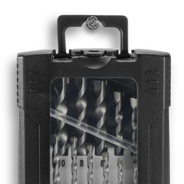 Набор содержит сверла диаметром от 3 до 10 мм. Каждое сверло имеет маркировку размера, выбитую на хвостовике, что позволяет легко идентифицировать его даже после многократного использования. Весь комплект поставляется в прочном пластиковом боксе, который обеспечивает удобную транспортировку и возможность крепления на стену в мастерской или на рабочем месте.