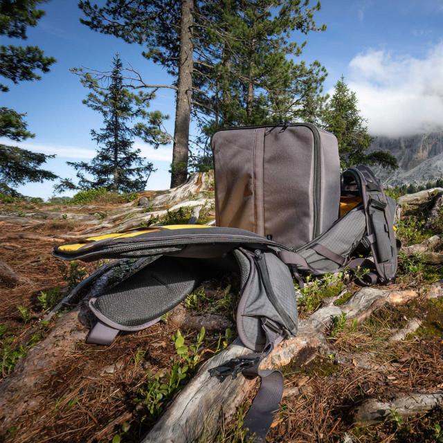 Съемный внутренний бокс для камеры позволяет адаптировать внутреннее пространство под различные наборы фототехники. Он позволяет разместить DSLR или CSC камеру, несколько дополнительных объективов, фотовспышку, небольшой дрон, зарядные устройства и аксессуары. Объем — 35 литров, что позволяет брать с собой не только технику, но и личные вещи. Доступ к фотооборудованию осуществляется только со спинки, что гарантирует максимальную безопасность техники. Если использовать рюкзак без бокса, открываются дополнительные точки доступа к вещам, что делает его удобным в роли походного рюкзака.