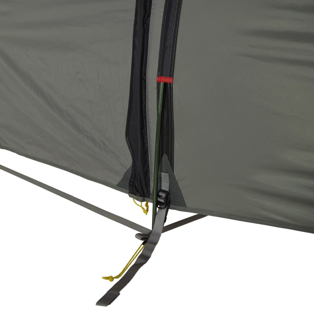 - Спеціальний фастекс червоного кольору регулює співвідношення довжини намету і довжини тамбура. При необхідності можна зробити довшим внутрішній намет і розмістити в ньому необхідні речі, або збільшити тамбур, надавши внутрішньому намету стандартні розміри, і розмістити в тамбурі більше речей, або організувати ще одне мале спальне місце довжиною 180 см.