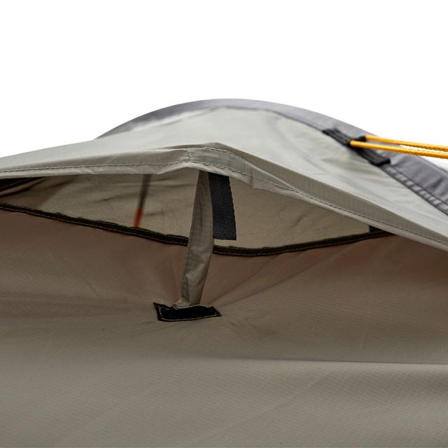 - Палатка имеет 4 больших вентиляционных клапана APEX, расположенных по бокам спальных мест в углах палатки. Таким образом, обеспечивается правильная вентиляция внутренней палатки и внешнего тента, предотвращается образование конденсата и регулируется внутренняя температура. Клапана фиксируются жестким фиксатором на застежке Velcro и не создают нежелательного шума даже под порывистым ветром.