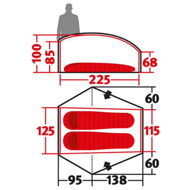 Внутренняя палатка (Д х Ш х В): 225 х 125 х 100 см