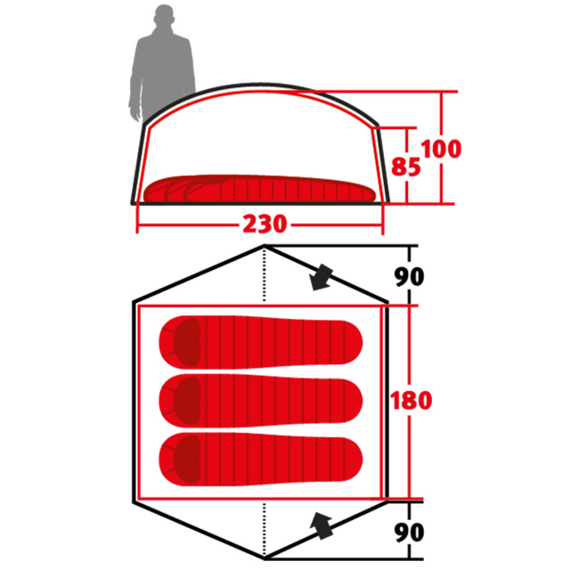 Внутренняя палатка (Д х Ш х В): 230 х 180 х 100 см