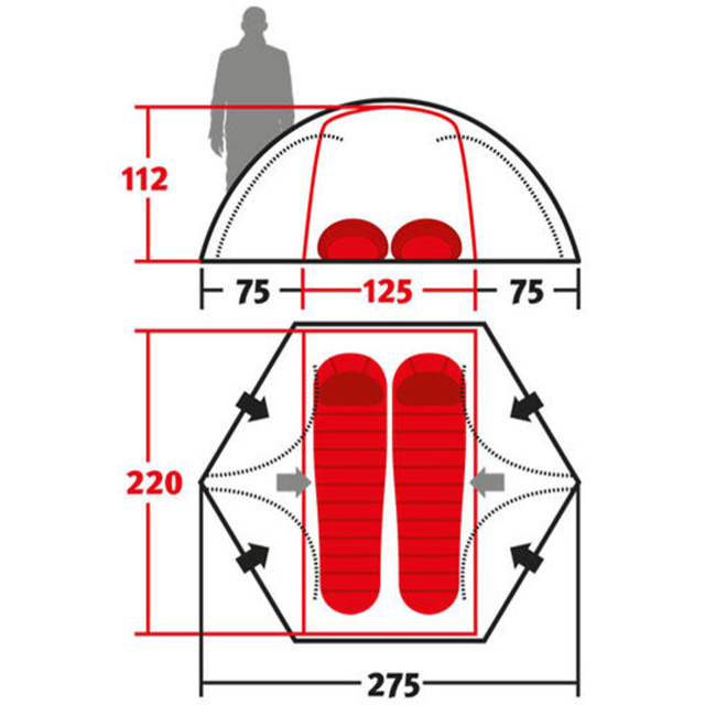 Внутренняя палатка (Д х Ш х В): 220 х 125 х 112 см