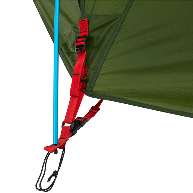 Фастексы соединения внутренней палатки и внешнего тента развернуты таким образом, чтоб контроль натяжения тента можно было легко сделать одной рукой. Пряжки петель фиксации тента колышками также регулируемые.