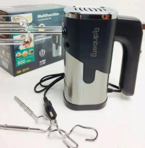 Миксер Rainberg – великолепный кухонный помощник. Он оснащен насадками для взбивания и перемешивания, и отлично справится с приготовлением теста, кремов и коктейлей, соусов и многого другого.